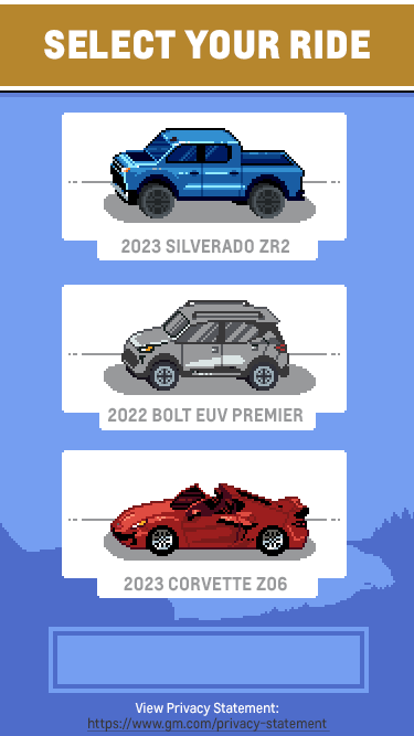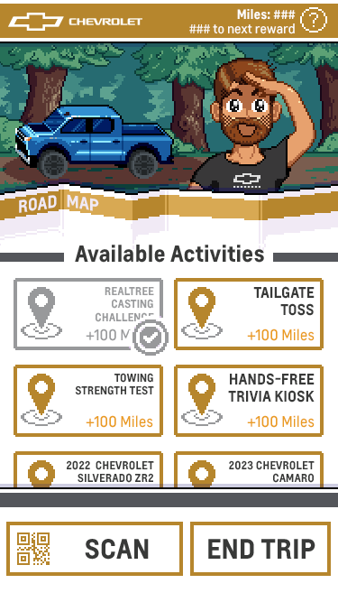 As lead game designer on this project, I was responsible with maintaining the project and designing key parts of the game. I also worked closely with, Chevy, and the developer, Genuine, to ensure the game was a lightweight browser-based experience that could be easily set up at any venue.